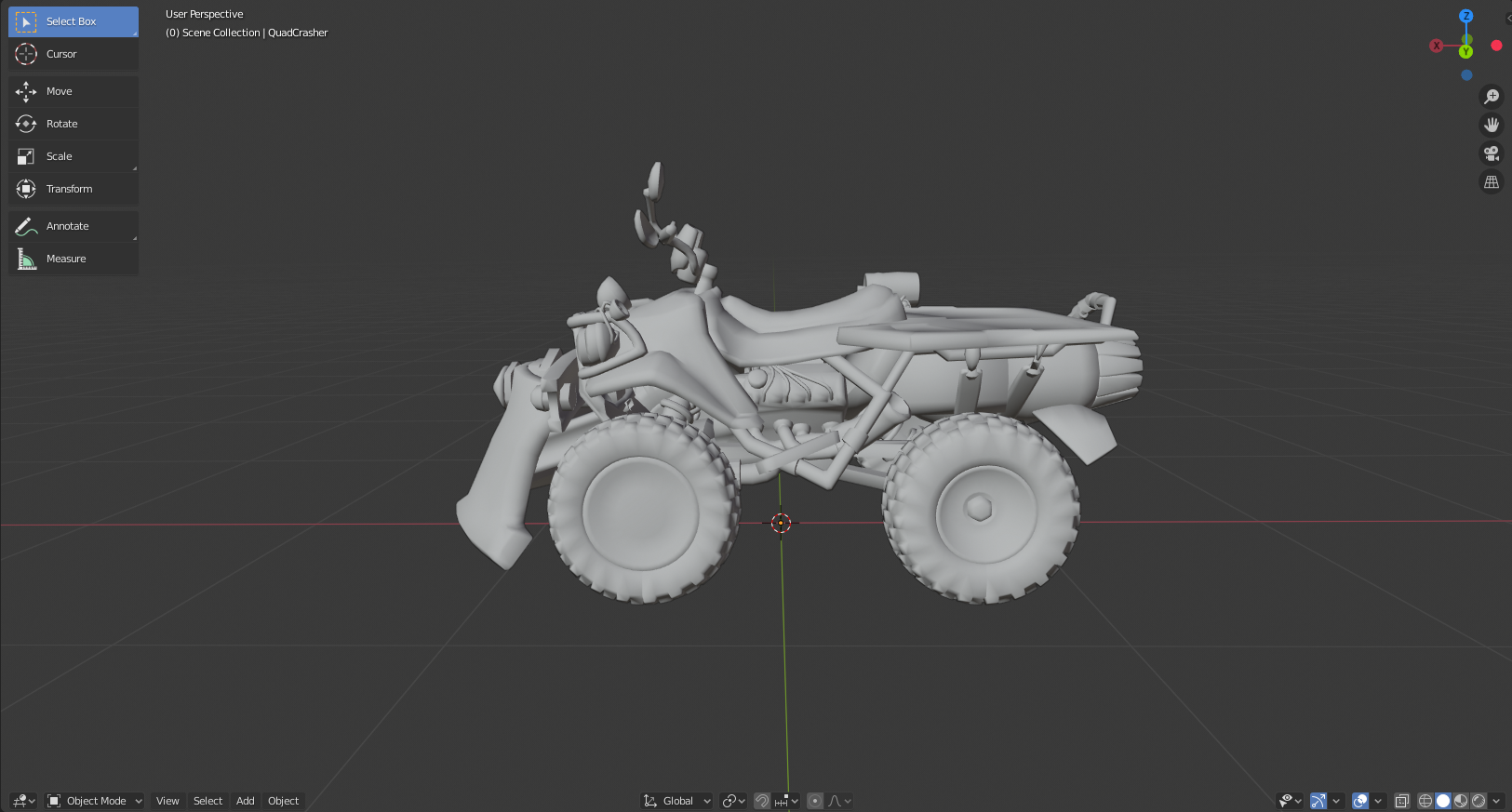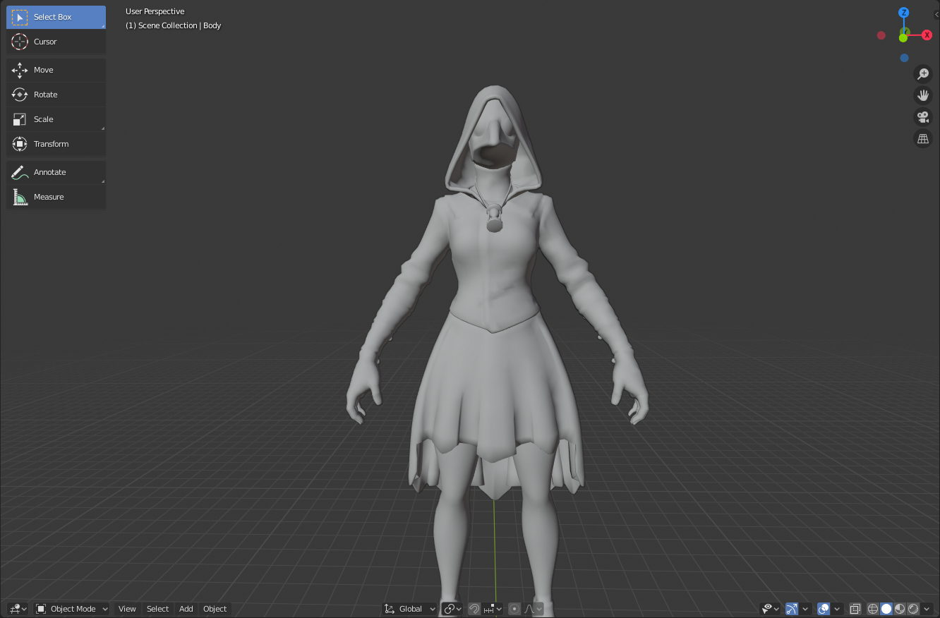 Using Blender, I pose, model and shade (colors/textures/lighting) to create an image from the cameras perspective.